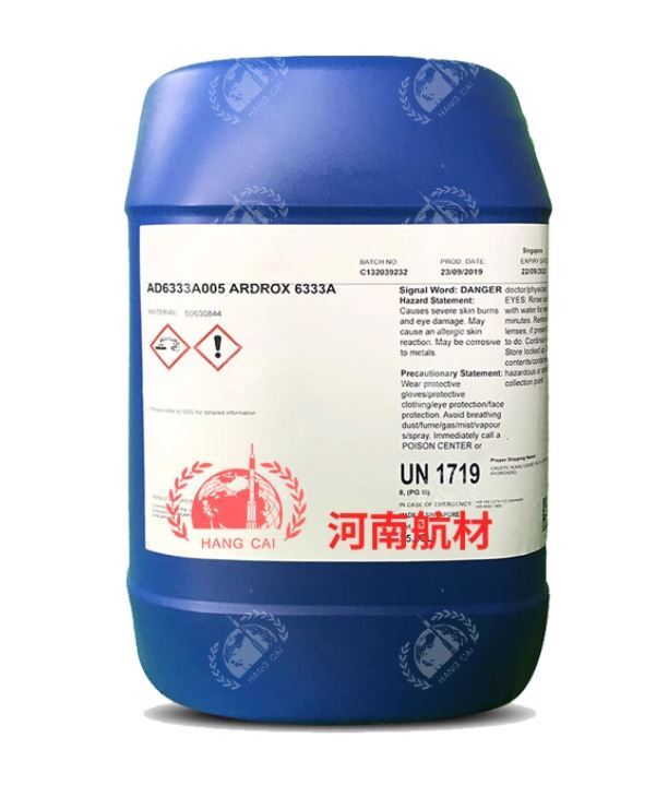 Chemetall Ardrox 6333A — это жидкий концентрат на водной основе, представляющий собой смесь щелочей, секвестрантов, ингибиторов коррозии и биоразлагаемых поверхностно-активных веществ.